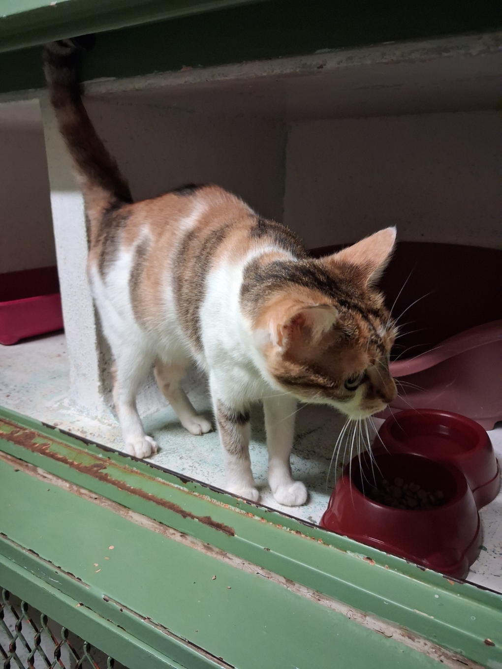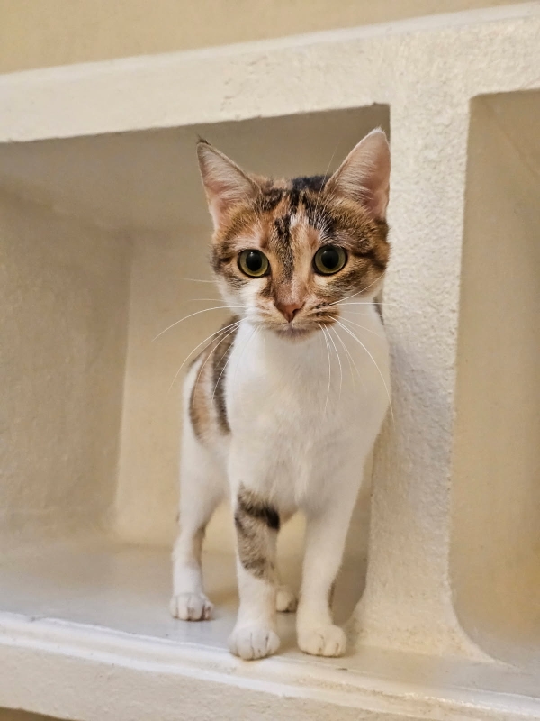 Une fois que notre vĂ©tĂ©rinaire nous donnera le feu vert, nous planifions de la placer avec d'autres chats pour Ă©valuer comment elle se comporte avec ses congĂ©nĂšres. En attendant, elle est une petite Ă©nigme tricolore, prĂȘte Ă ĂȘtre dĂ©codĂ©e et aimĂ©e.