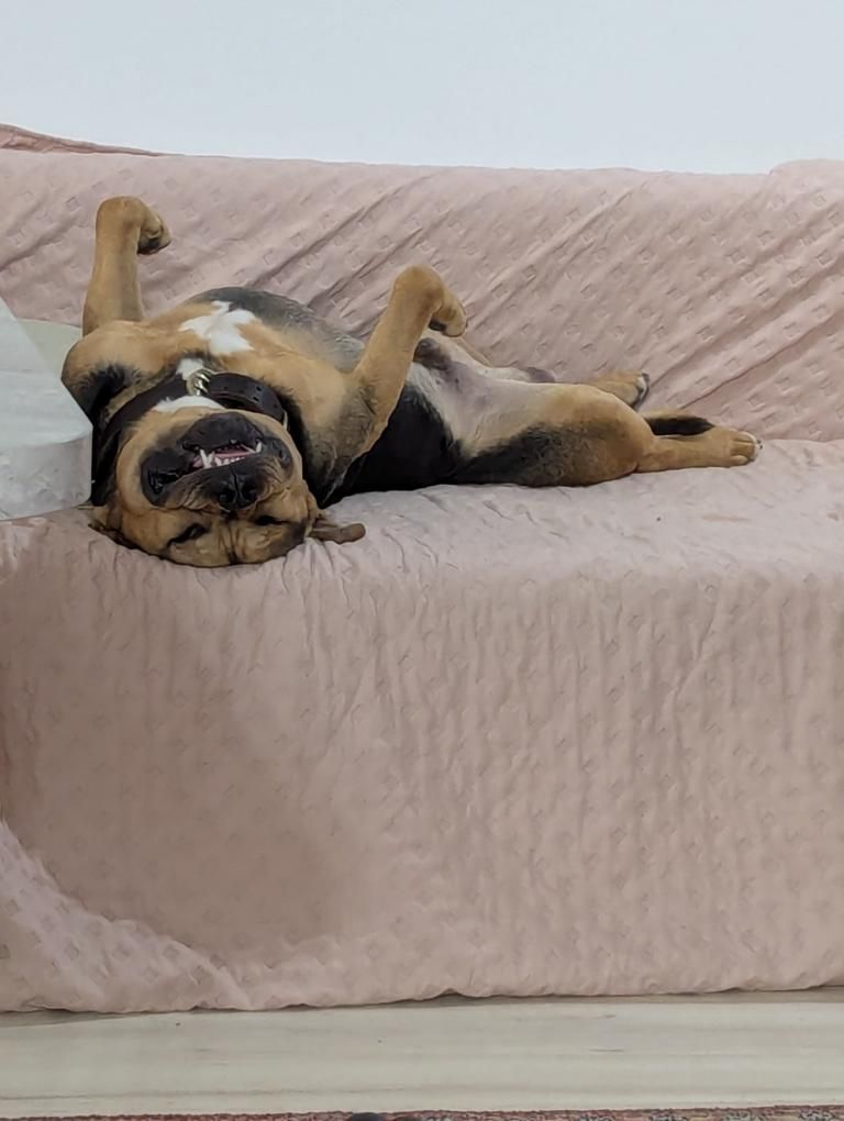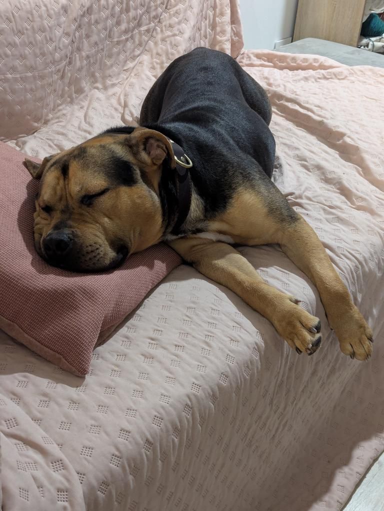Bonjour à toute l'équipe ! Nous avons adopté Alfa la semaine dernière et tout se passe bien. C'est un nounours qui nous fait bien rigoler, il prend ses marques... c'est un vrai bonheur. Je joins quelques photos de notre gros bébé, mais attention c'est beaucoup trop mignon ! Un grand merci à vous pour tout ce que vous faites pour ces animaux qui n'ont pas eu de chance. Vous faites un sacrément beau boulot !