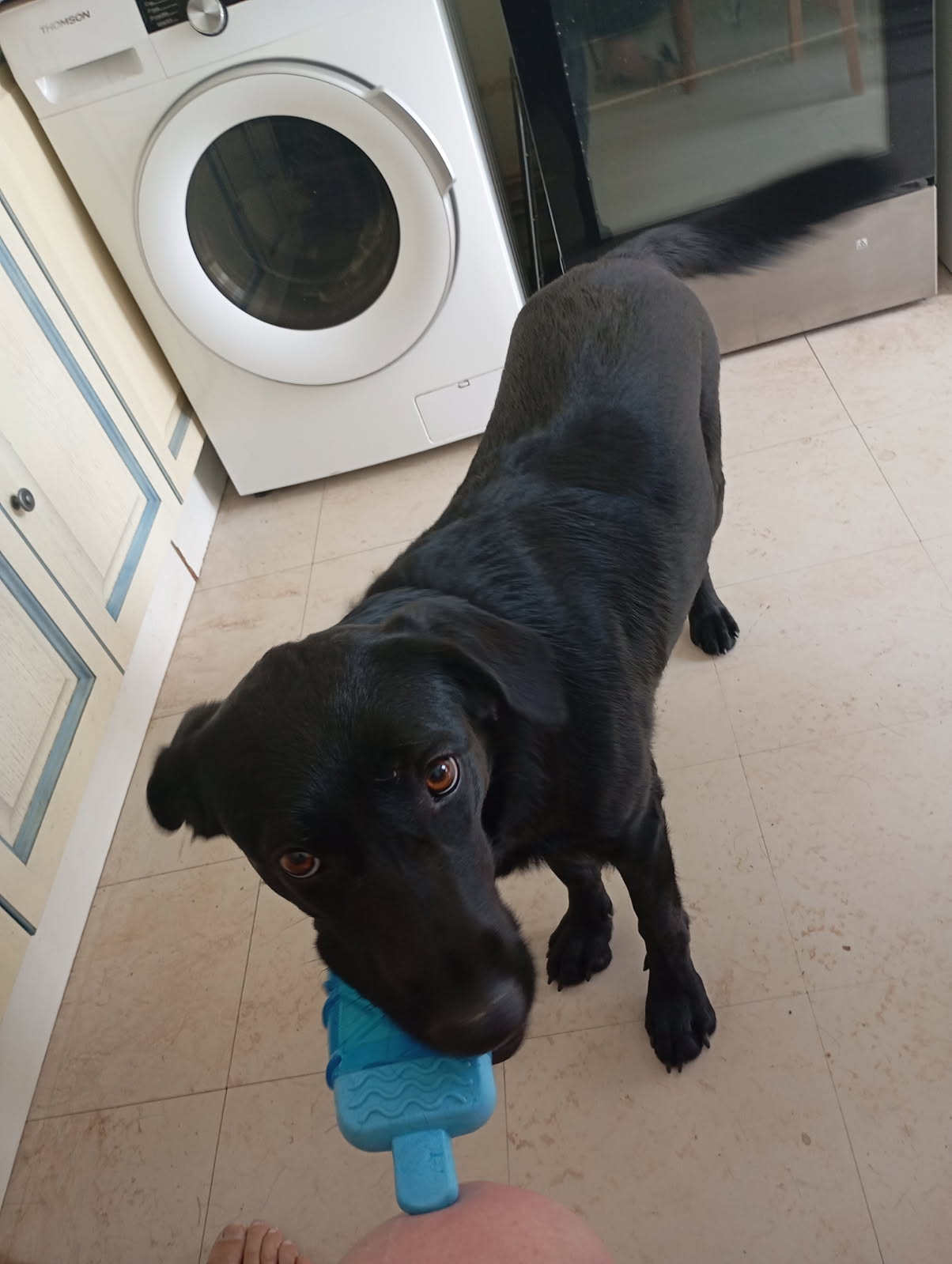 Au début elle a fait des grosses bêtises dans la maison, mais là elle s'est calmée et peut rester seule quelques heures sans faire de dégâts.