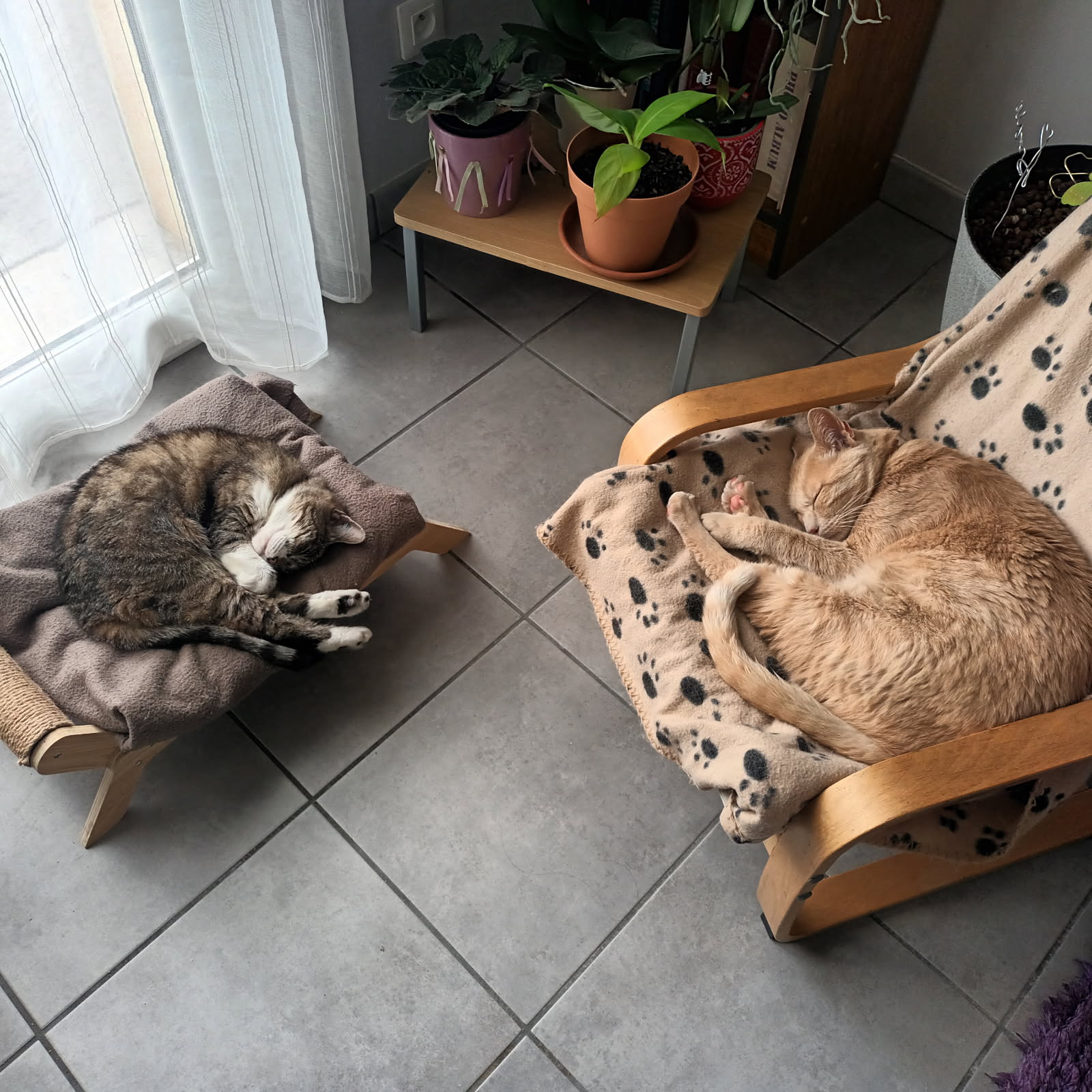 Mya ne veux toujours pas sortir dehors c’est pour cela qu'elle a encore son collier, la cohabitation avec son nouveau copain se passe plutôt bien.