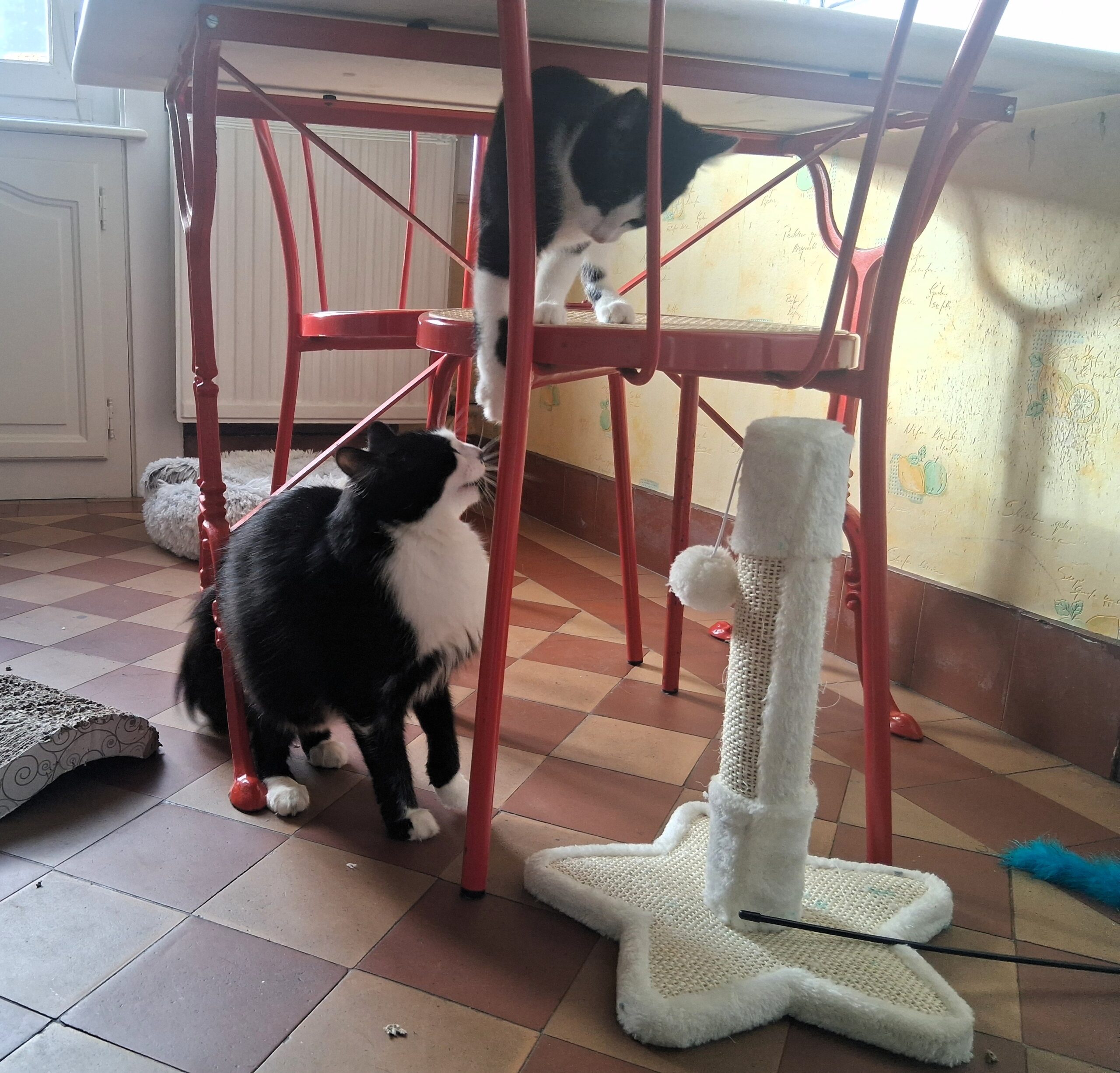 Nany et Arthur sont chez nous depuis ce lundi ; Arthur a déjà bien pris ses marques, Nany est plus distante, mais est sortie de sa cachette un bon moment ce matin ; je ne doute pas qu'ils auront bientôt envie de découvrir les autres pièces de leur nouveau logement !