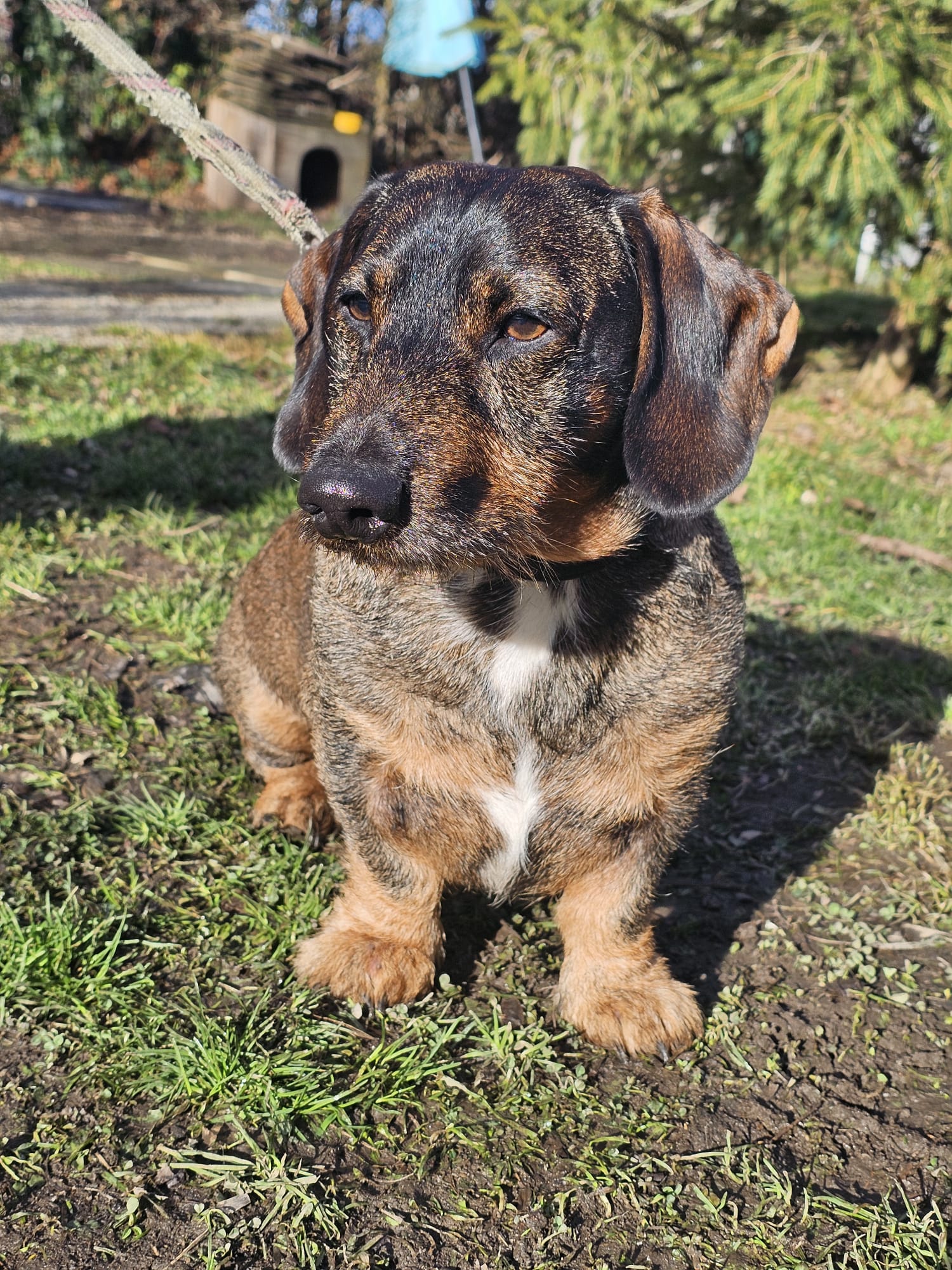 Rocky est un teckel mâle de 5 ans, arrivé récemment au refuge suite à un abandon. Derrière sa petite silhouette se cache un chien profondément gentil, attaché à l’humain et en quête de stabilité. Son regard doux en dit long : Rocky cherche avant tout une présence rassurante.