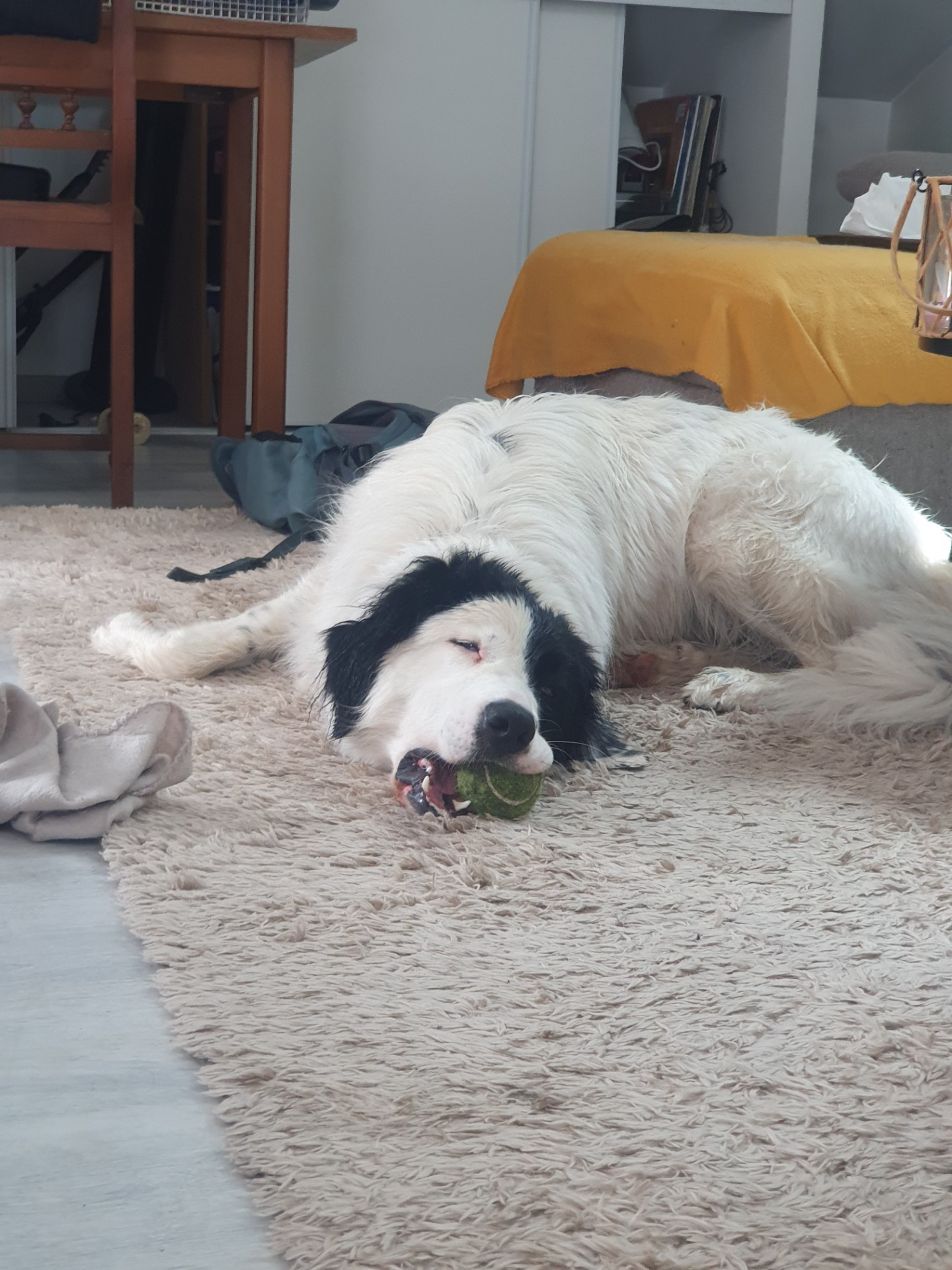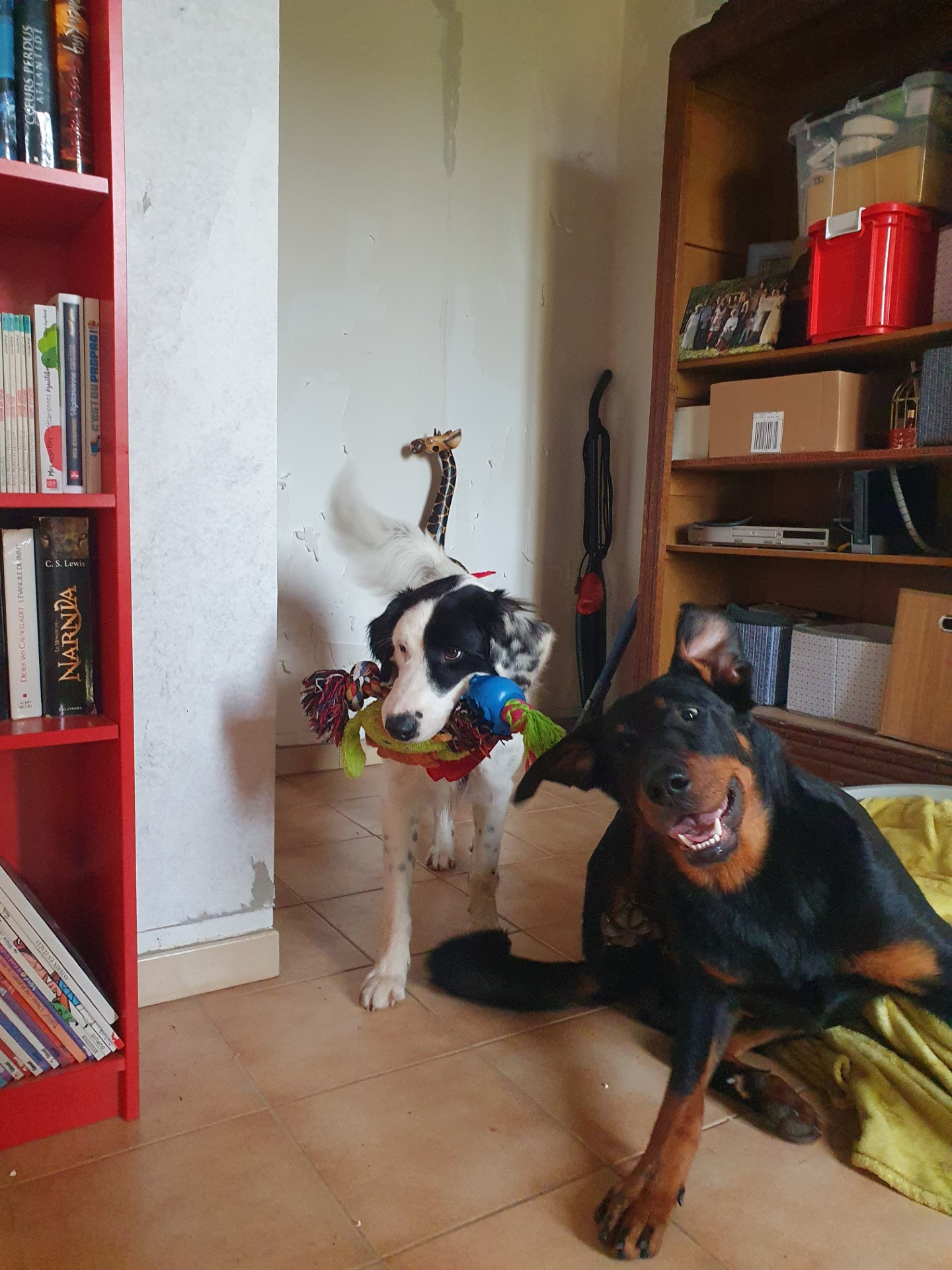 Bonjour, je vous envoie ce mail afin de vous raconter notre première journée :).Tobby est un chien hyper affectueux, tellement qu'il l'exprime en sautant et en mordillant, mes avant bras peuvent en témoigner haha.J'essaie alors de lui apprendre qu'il a droit de sauter et mordiller seulement en phase de jeu. Il est très intelligent et comprend très vite, ce chien est plein de bonne volonté.A son arrivée le chat n'était pas content, pour le moment chacun reste de son côté de la barrière.Il a un nouveau plaid et l'aime tellement que c'est devenu sa petite amie si vous voyez ce que je veux dire 😅.Seules bêtises à déplorer : 3 pipis sur nos plantes d'intérieur, ce n'est pas si grave, il joue avec nos affaires telles que les chaussures et les chaussettes mais sans les abîmer ce qui est très sympa de sa part.En laisse c'est presque un chien modèle, on lui apprend depuis hier à s'arrêter à chaque passage piéton et attendre le go et ça commence déjà à rentrer.Il n'aime pas être seul la nuit. Au bout de 4h de sommeil il a pleuré si fort que j'ai dû ouvrir la porte de ma chambre sur laquelle il y a la barrière et resté dans son champ de vision pour le reste de la nuit.Pour le moment tout se passe au mieux je suis pleine d'espoir pour lui, les premiers temps vont sûrement être durs mais il s'agit vraiment d'un bon chien.CordialementJillian R