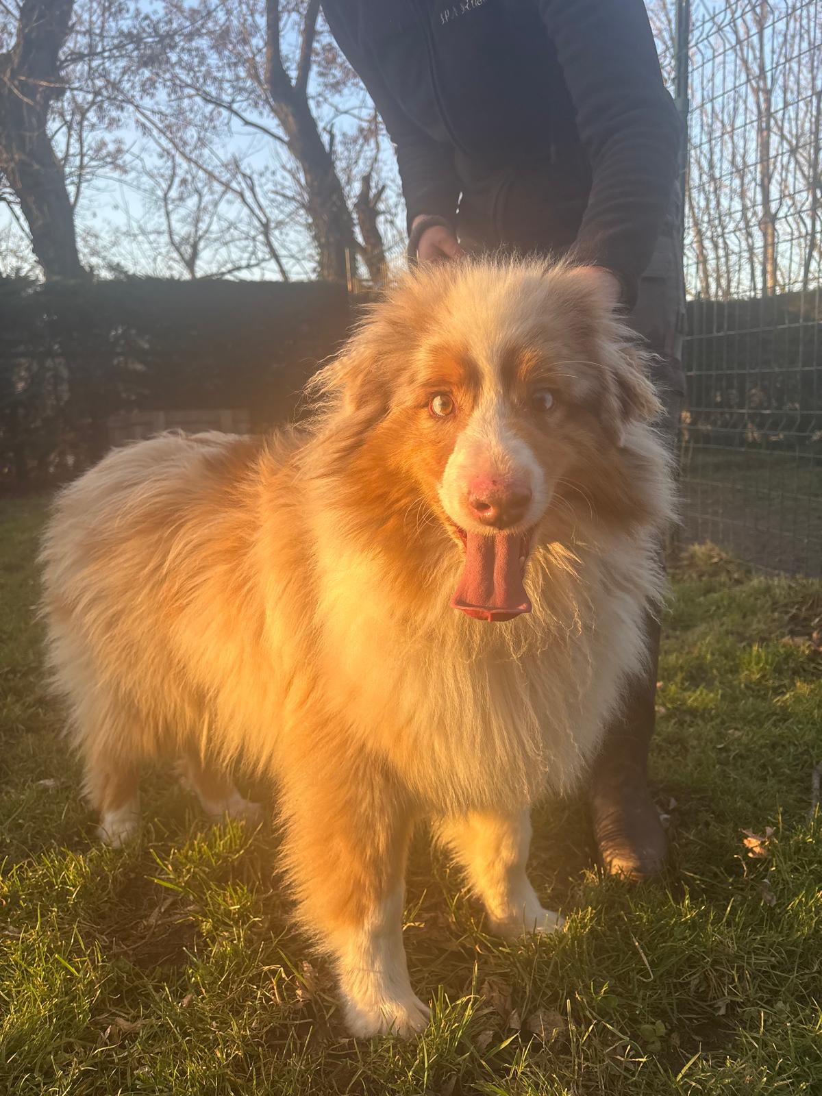 Vegas est un Berger Australien mâle de 1 an et 5 mois, très très sympa, attachant et affectueux. Arrivé le 17 janvier suite à un abandon, il est castré. Curieux et dynamique, il a besoin d’un encadrement adapté pour canaliser son enthousiasme et profiter pleinement de la vie en compagnie de ses humains.
