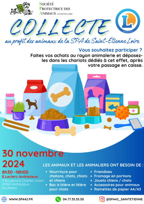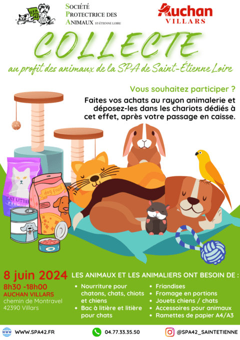Le magasin Intermarché Super Roche‑la‑Molière, situé au 3 boulevard Pierre et Marie Curie (42230 Roche‑la‑Molière), s’est mobilisé en faveur de notre refuge en organisant une collecte généreuse de...