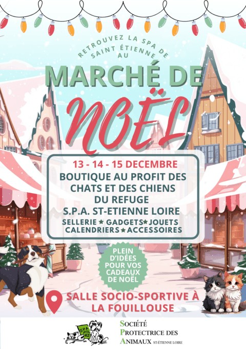 Du 12 au 14 décembre, retrouvez la SPA de Saint-Étienne Loire au Marché de Noël de La Fouillouse ! 🎄🐾Venez rencontrer nos équipes et craquez pour nos calendriers 2026, des accessoires et articles...