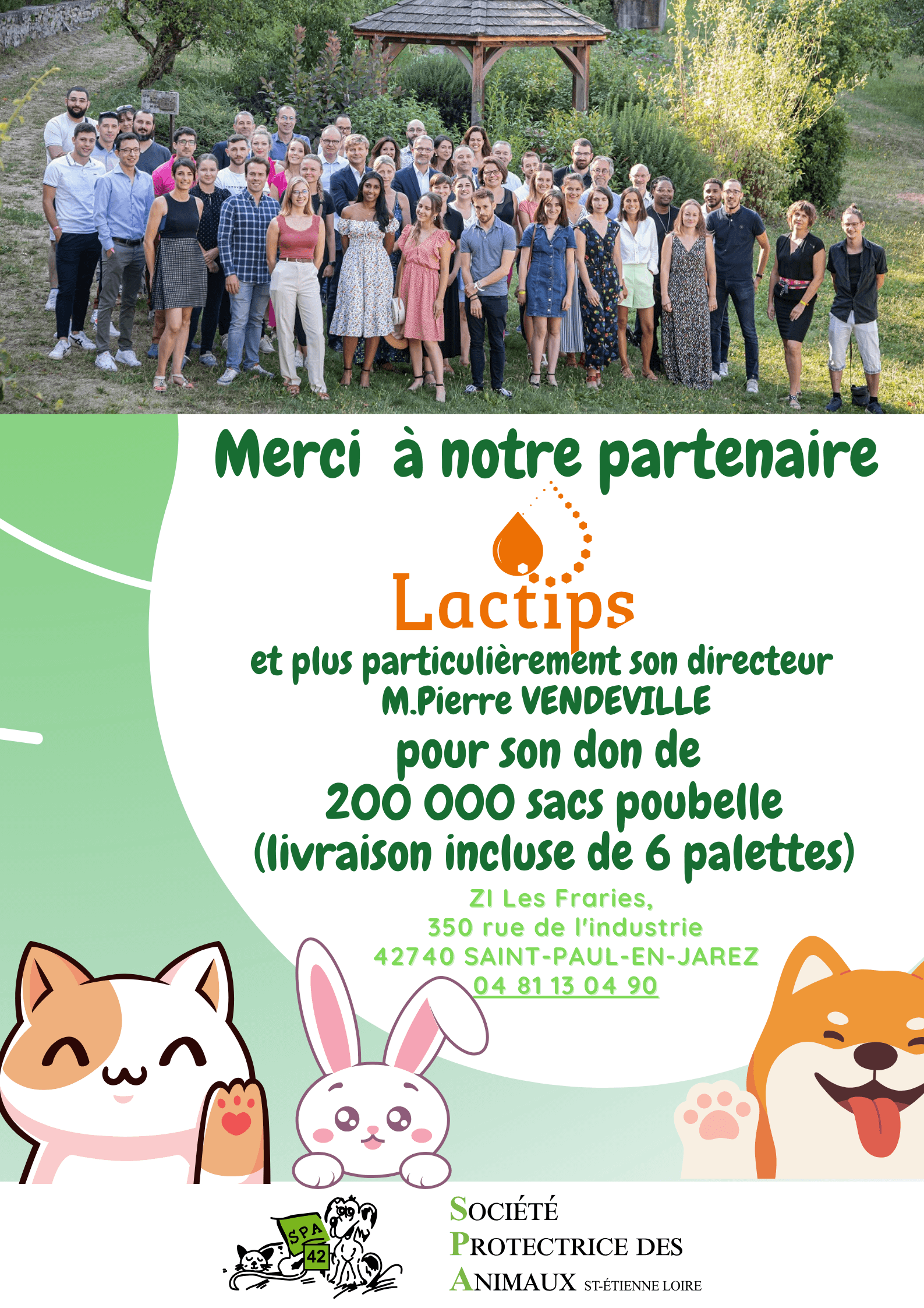 Merci à notre partenaire LACTIPS pour son don de 200 000 sacs poubelles ainsi que de la livraison offerte.